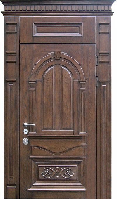 Входные двери. Они сочетают металлический каркас с массивной отделкой, обеспечивая надежную защиту от взлома, а также отличные тепло- и шумоизоляционные характеристики. Варианты массива позволяют добиться солидного и эстетичного внешнего вида, сочетающегося с любым фасадом.