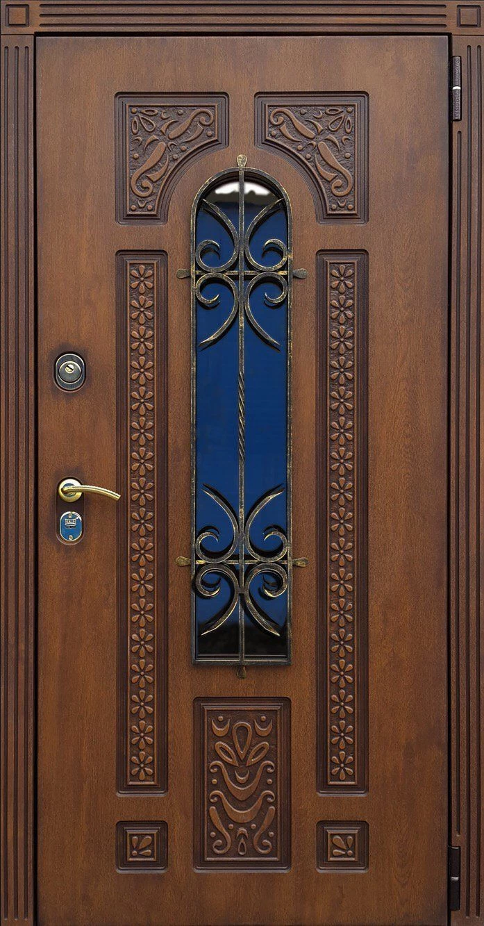 Прочная металлическая Дверь с витражами DZ635 по цене от 65 000 руб. под заказ в любой комплектации. Вы можете выбрать материал, замки, цилиндры и многое другое. Производим сами! Быстрая доставка и установка в Марксе.