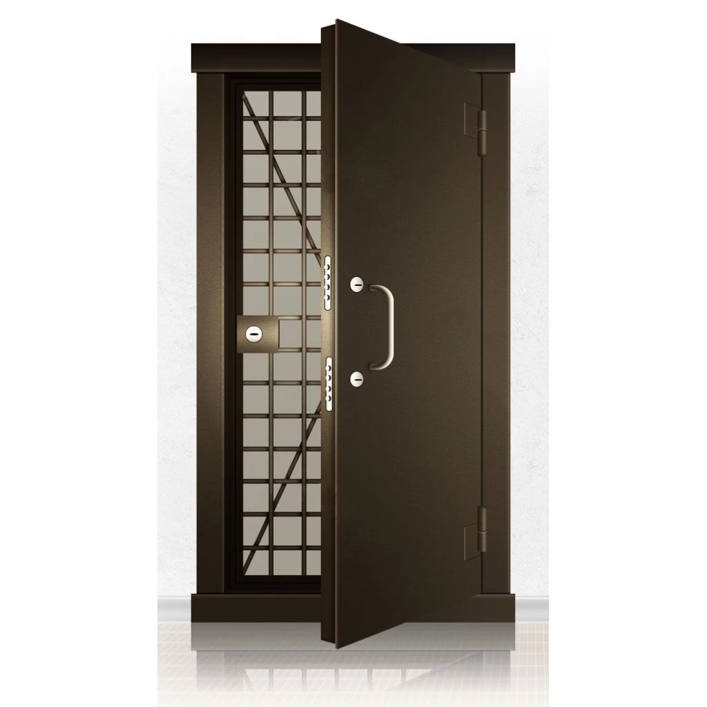 Металлические двери КХО и КХН представляют собой входные блоки, обладающие высоким уровнем взломостойкости и состоят из трех основных элементов: усиленного каркаса, сплошного металлического полотна и решетчатой двери. Дверной блок изготавливается из стального уголка 100*100 мм. Места крепления блока к стене цементируются и закрываются стальными наличниками шириной 40 мм. Крепеж заходит вглубь стены на 80 мм. В конструкции внешней створки монтируются ребра жесткости, для обшивки используется сталь толщиной не менее 3 мм. Внутренняя решетка изготавливается из прутка диаметром 16 мм. Размер ячеек решетки должен составлять не более 15 на 15 см. В точках пересечения прутья надежно приваривают друг к другу. В КХО и КХН необходимо поддерживать определенную температуру и влажность. Для этого внутреннее пространство глухой двери заполняется теплоизоляционным материалом, а по периметру двери приклеивается уплотнитель. Такие двери оборудуются замками с повышенным уровнем взломостойкости. Специализированные двери КХО и КХН в Марксе могут быть оснащены сигнализацией, в конструкции могут быть проушины для навесного замка и элементами для опечатывания. Если идет речь о двери в комнату хранения оружия, в створке оборудуется окно для выдачи оружия и спец. средств, которое накрывается стальной дверцей.