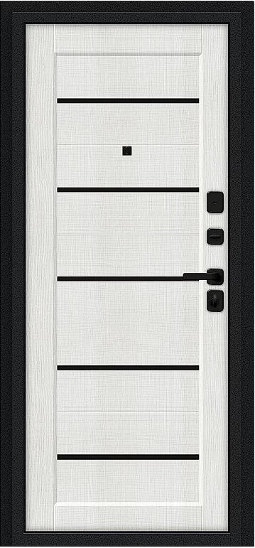 Надежная входная Дверь Браво Борн/SBlack Букле черное/Bianco Melinga премиум класса по цене 33 443 руб. Большая толщина стали защитит от проникновения в ваш дом, квартиру или коттедж. Используется очень качественная фурнитура: замки, цилиндры, ручки, защелки. Покрытие и отделка двери изготовлено под внимательным контролем производителя. Дверь имеет долгий срок службы и гарантию.