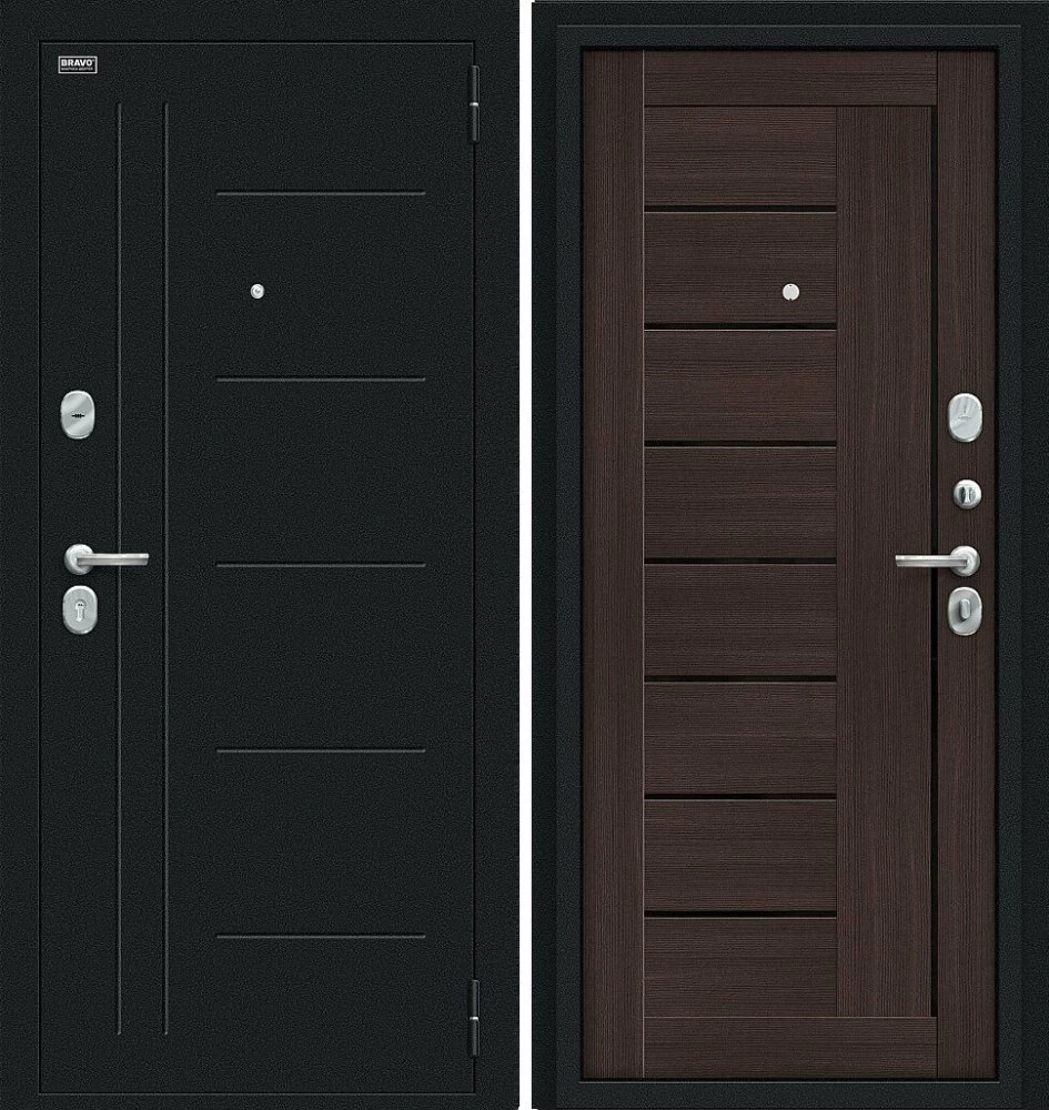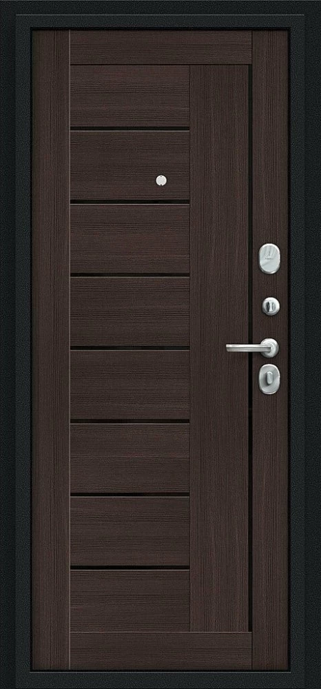 Надежная входная Дверь Браво Проф Букле черное/Wenge Veralinga премиум класса по цене 32 943 руб. Большая толщина стали защитит от проникновения в ваш дом, квартиру или коттедж. Используется очень качественная фурнитура: замки, цилиндры, ручки, защелки. Покрытие и отделка двери изготовлено под внимательным контролем производителя. Дверь имеет долгий срок службы и гарантию.