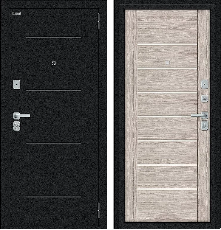 Надежная входная Дверь Браво Техно/BChrome Букле черное/Cappuccino Melinga премиум класса по цене 34 843 руб. Большая толщина стали защитит от проникновения в ваш дом, квартиру или коттедж. Используется очень качественная фурнитура: замки, цилиндры, ручки, защелки. Покрытие и отделка двери изготовлено под внимательным контролем производителя. Дверь имеет долгий срок службы и гарантию.