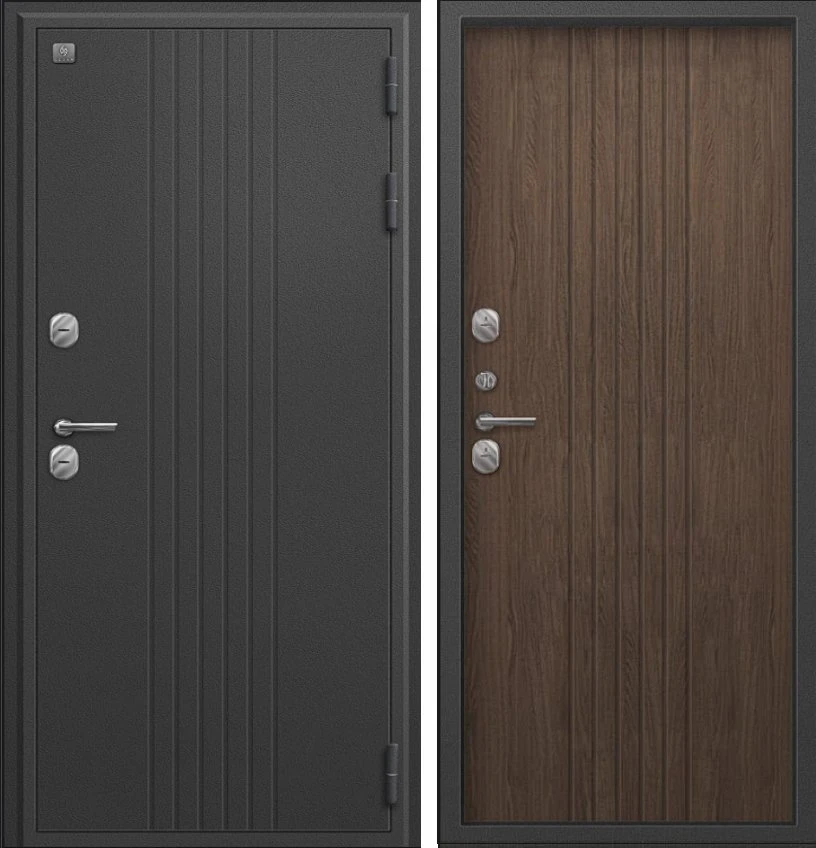 Надежная входная Дверь Термо-90 графит букле - миндаль рифлёный премиум класса по цене 38 343 руб. Большая толщина стали защитит от проникновения в ваш дом, квартиру или коттедж. Используется очень качественная фурнитура: замки, цилиндры, ручки, защелки. Покрытие и отделка двери изготовлено под внимательным контролем производителя. Дверь имеет долгий срок службы и гарантию.